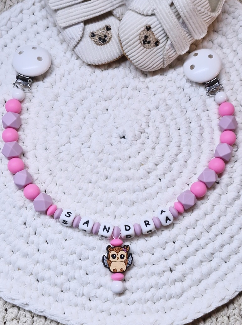 Hallo! Suchst du nach einem zauberhaften Accessoire für eure täglichen Spaziergänge? In meiner kleinen Werkstatt habe ich diese liebevolle Kinderwagenkette mit der süßen Eule für dich angefertigt. Sie ist ein echter Blickfang und bringt eine sanfte, beruhigende Atmosphäre an euren Kinderwagen! 👶💜